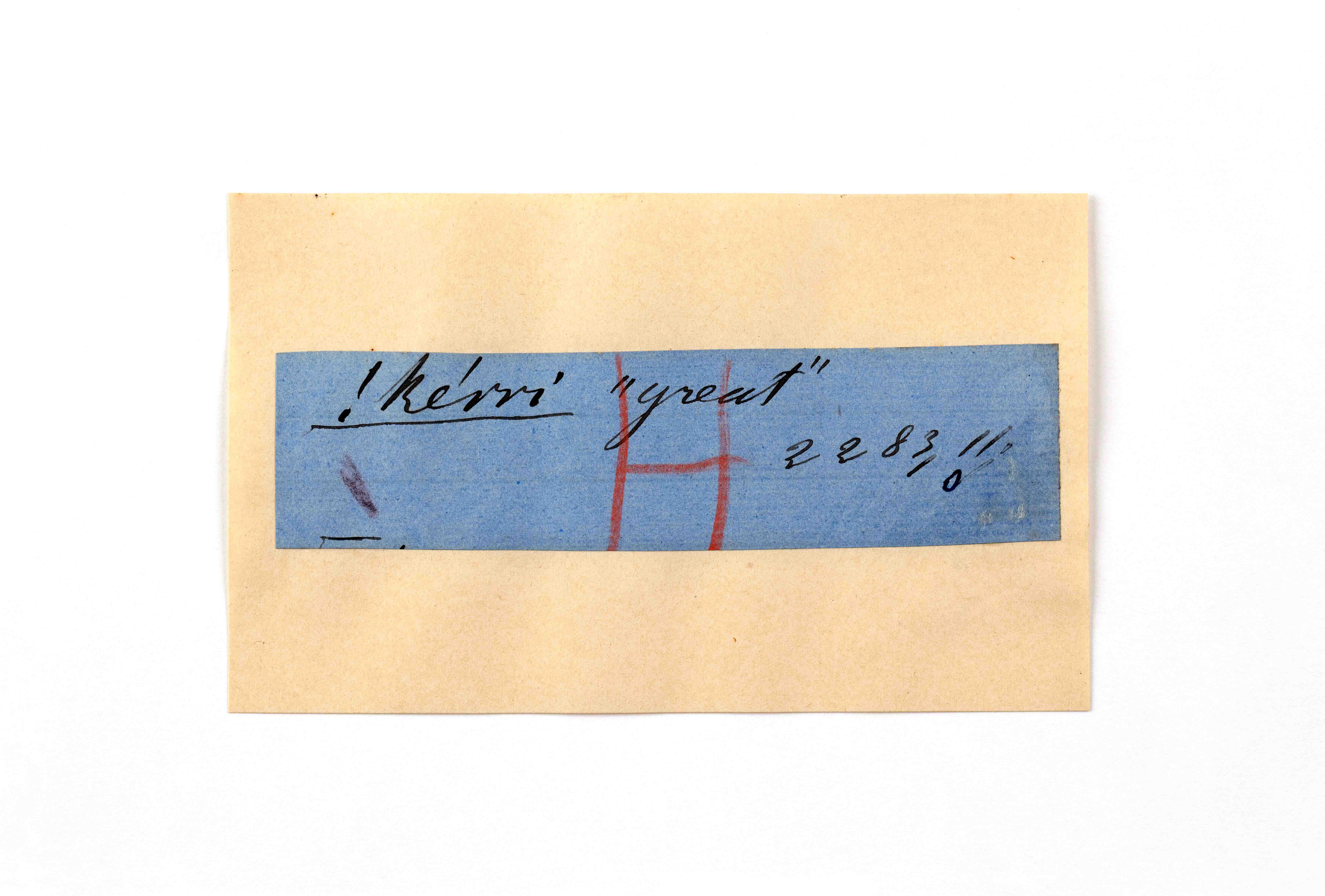 ink on blue paper glued on card