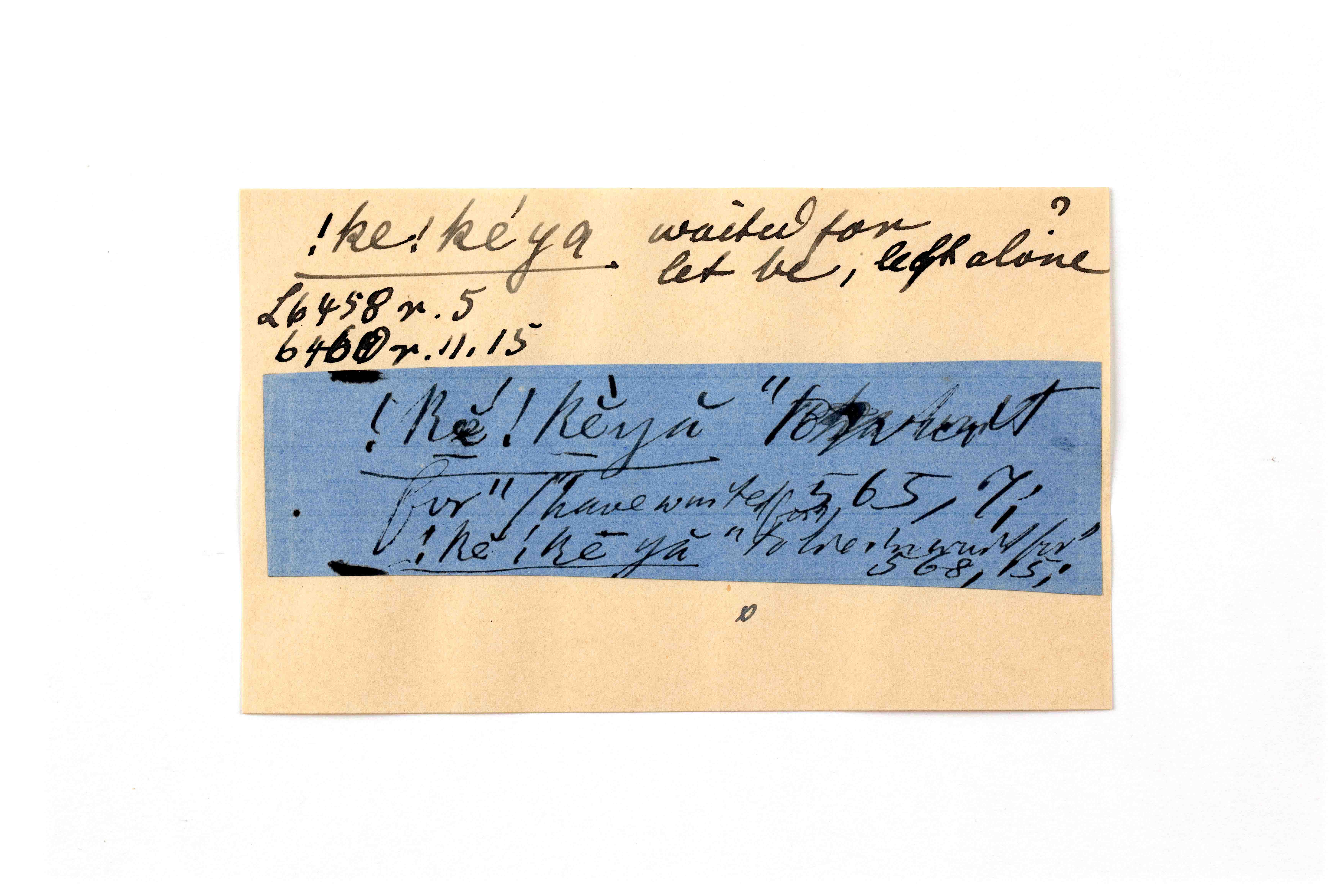 ink on blue paper glued on card
