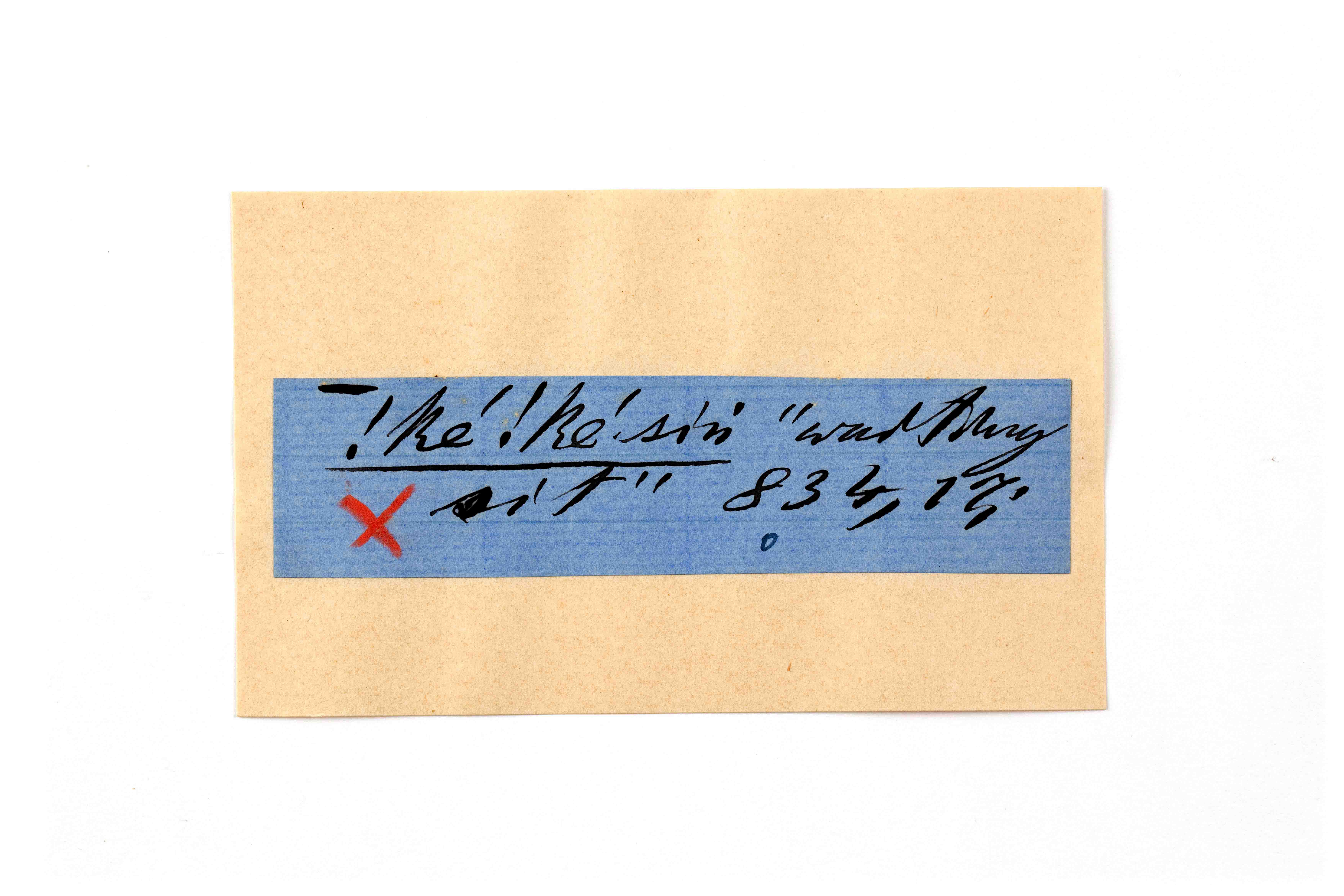 ink on blue paper glued on card