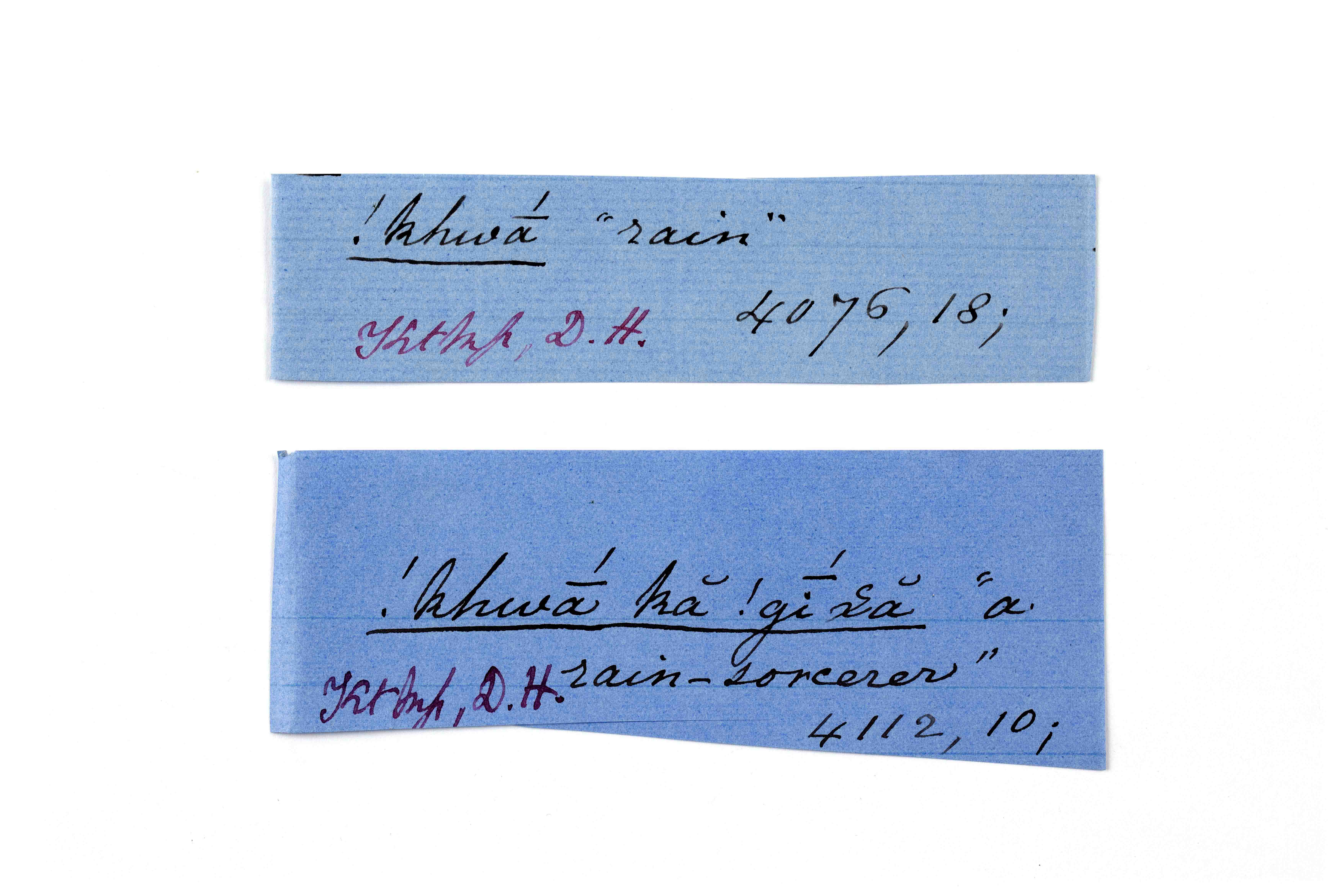 ink on blue paper glued on card