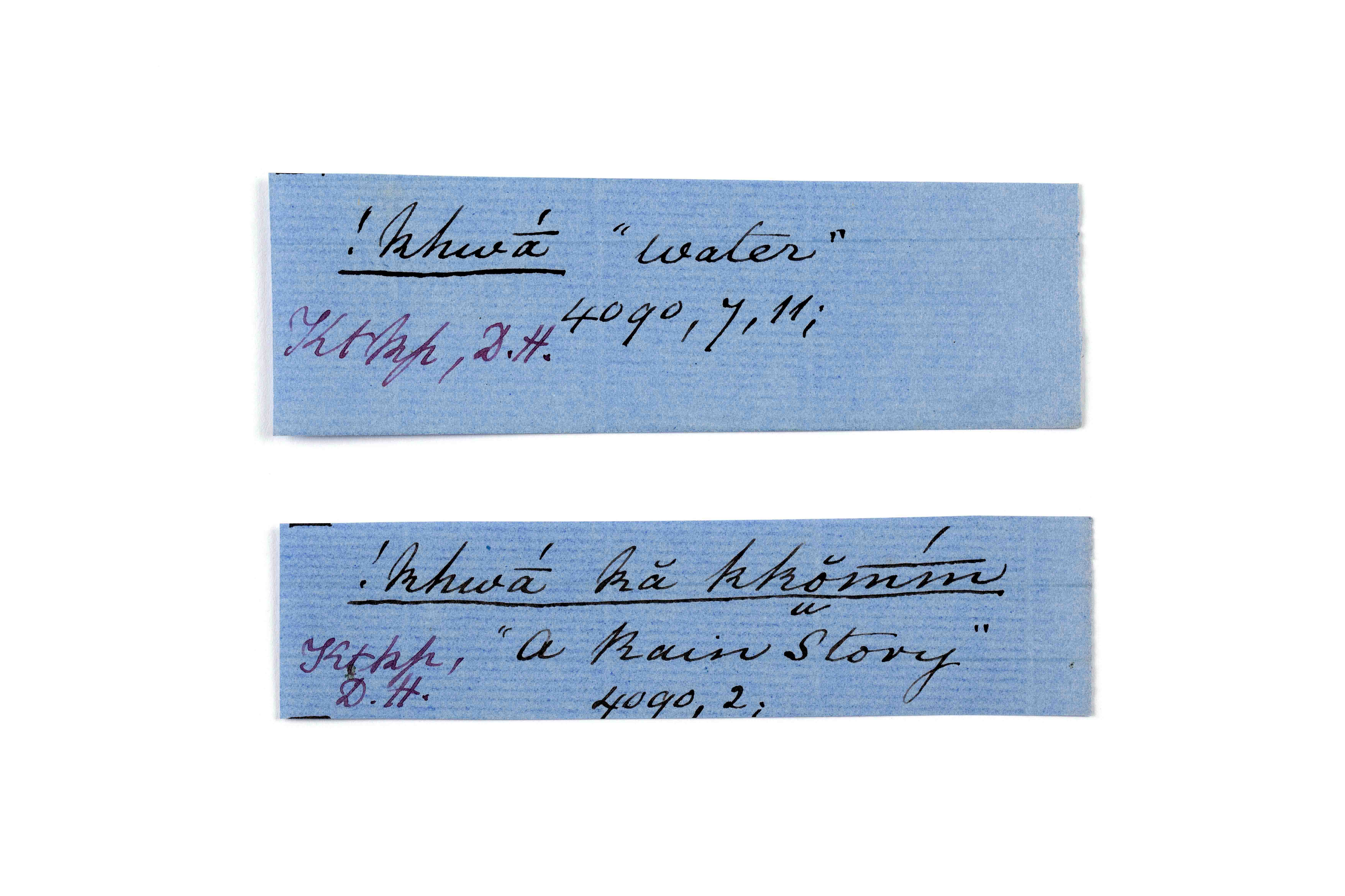 ink on blue paper glued on card