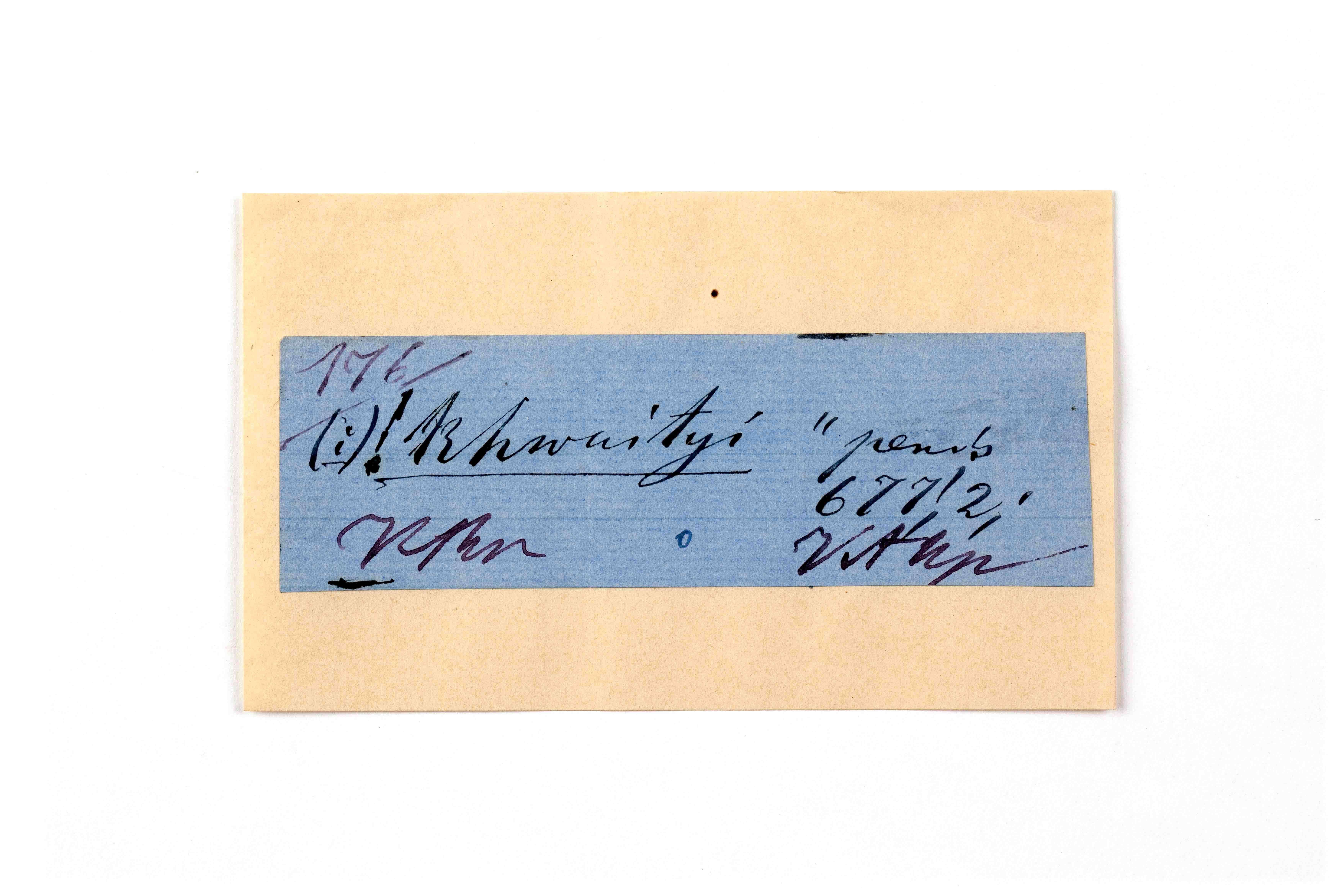 ink on blue paper glued on card