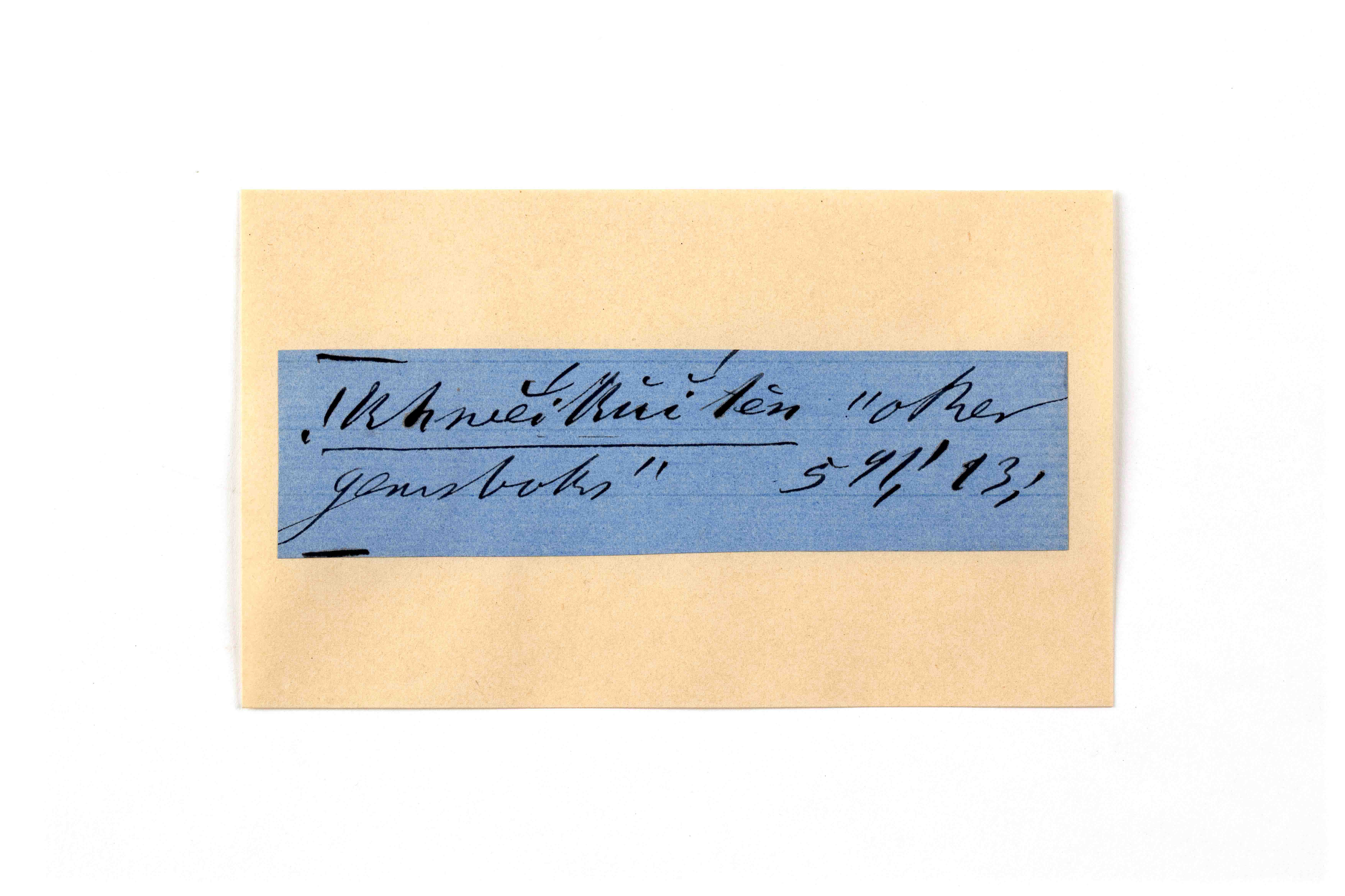 ink on blue paper glued on card