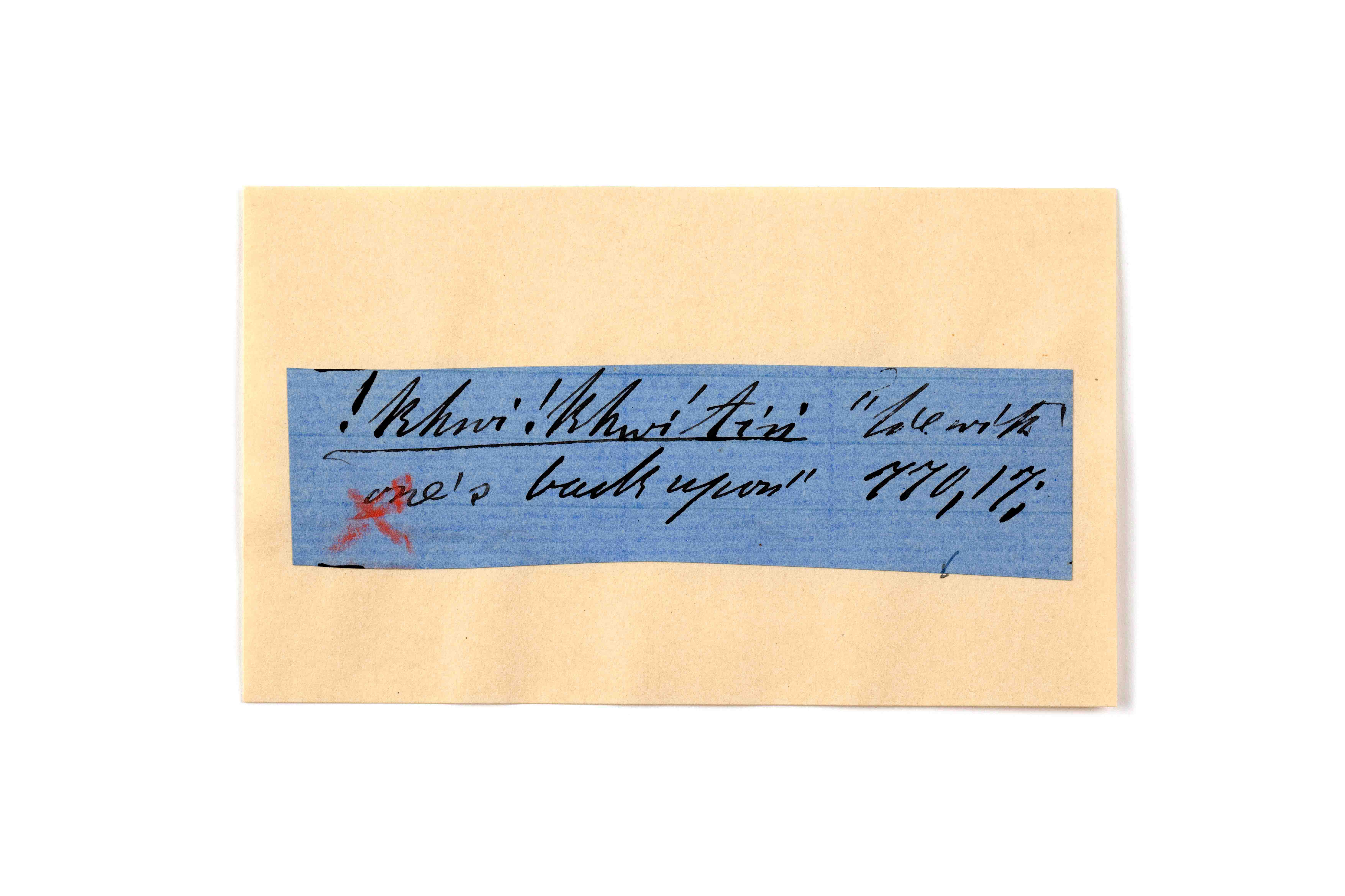 ink on blue paper glued on card