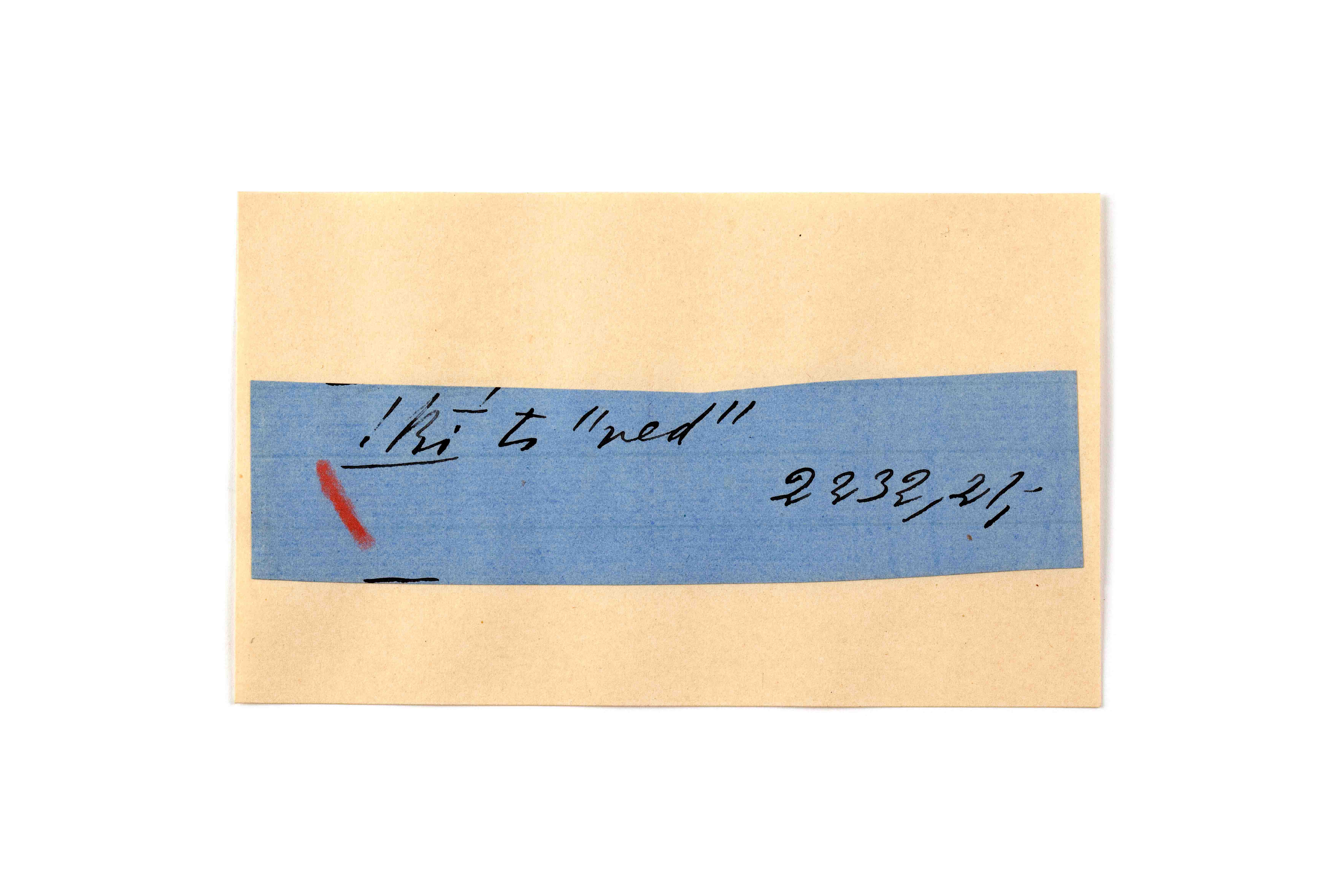 ink on blue paper glued on card