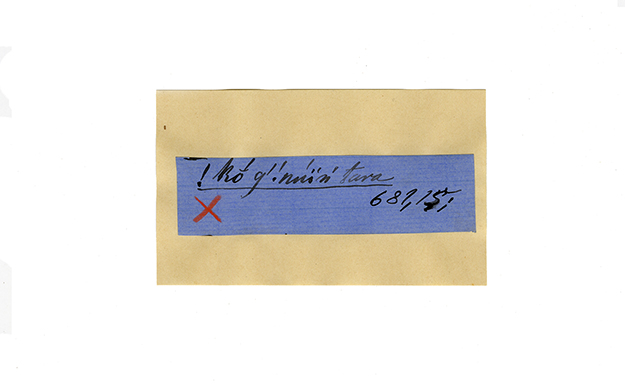 ink on blue paper glued on card