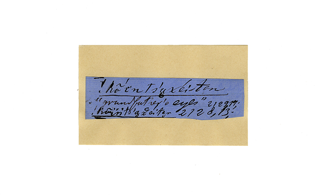 ink on blue paper glued on card