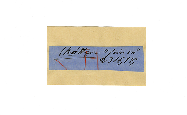 ink on blue paper glued on card