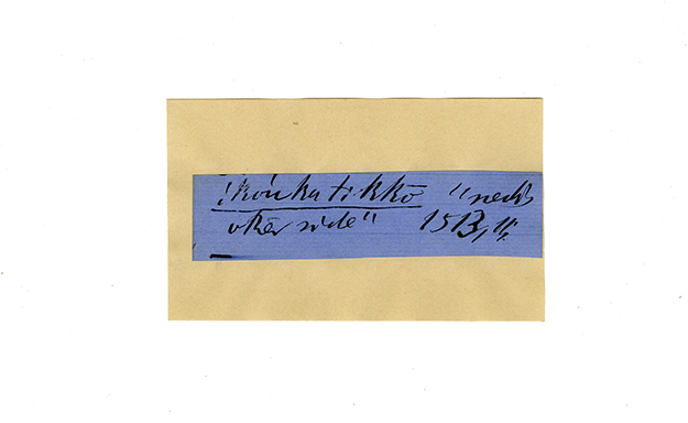 ink on blue paper glued on card