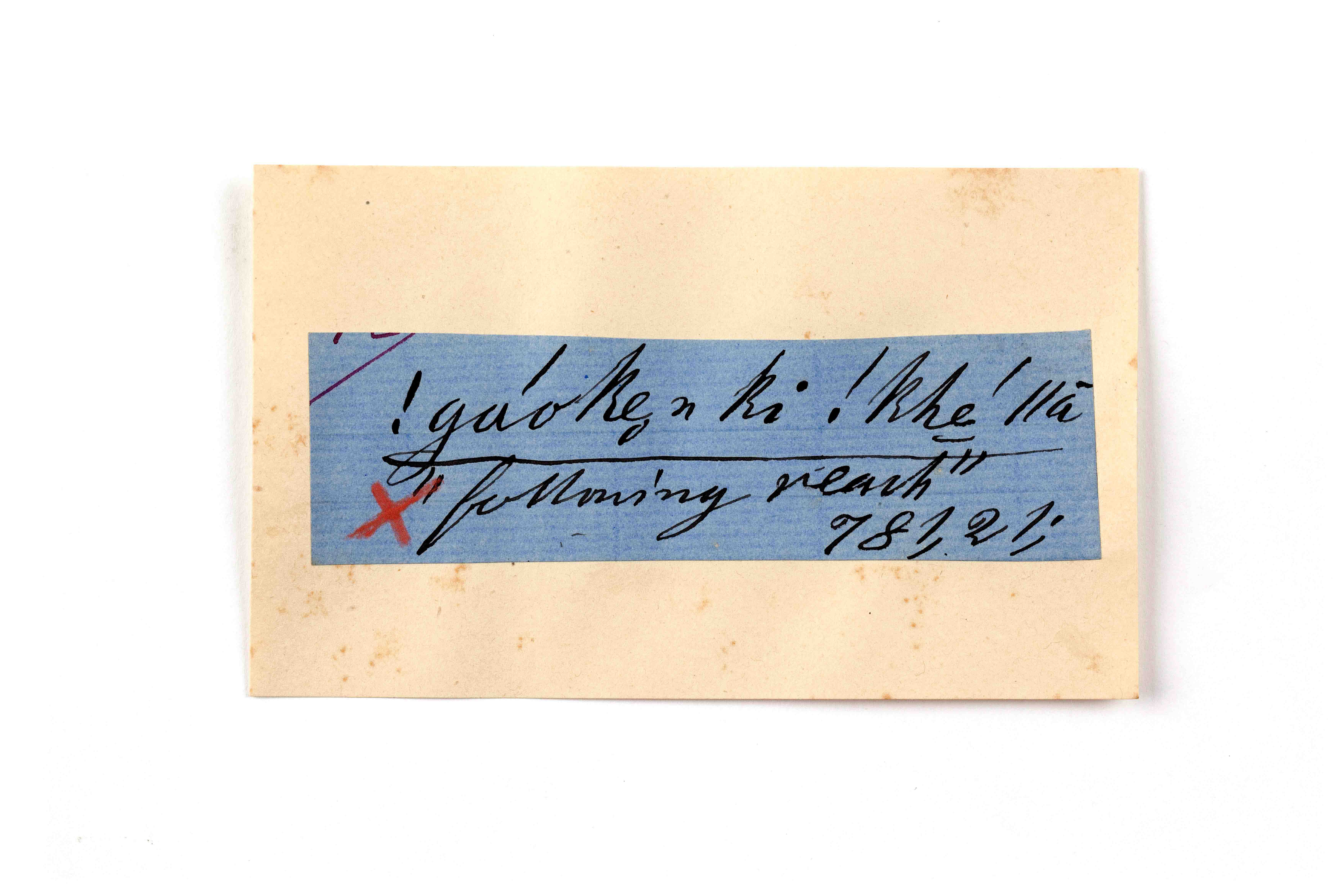 ink on blue paper glued on card