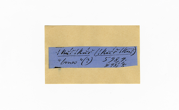 ink on blue paper glued on card