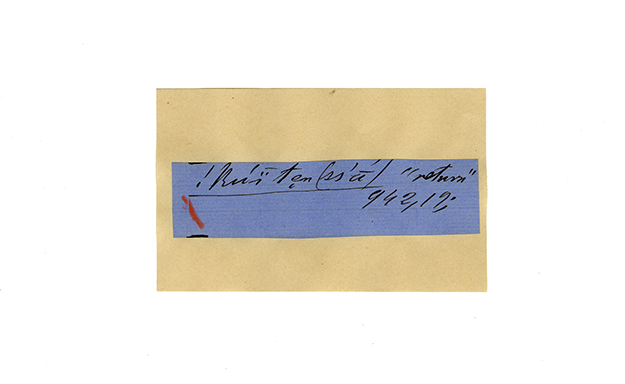 ink on blue paper glued on card