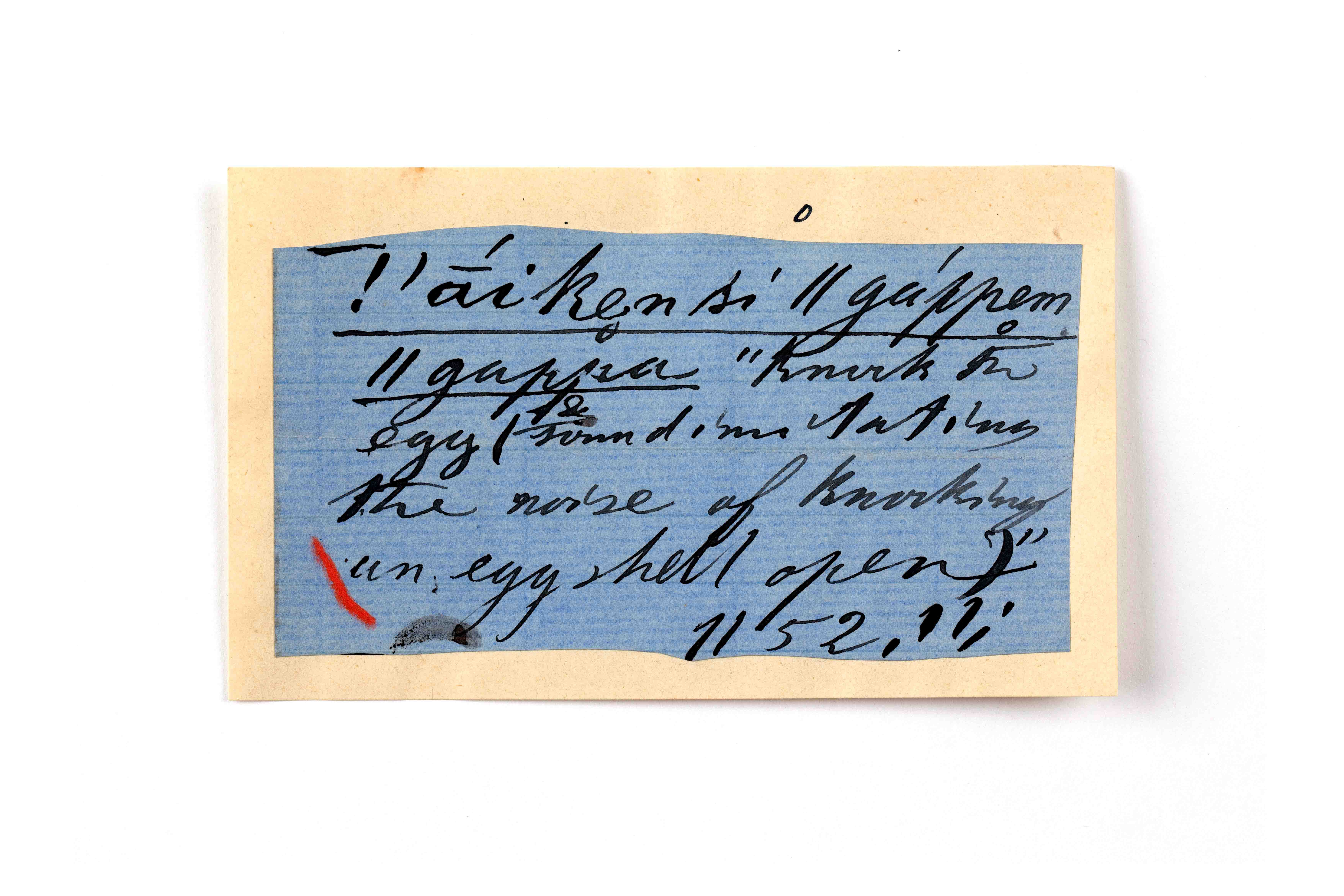 ink on blue paper glued on card