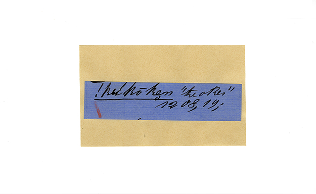 ink on blue paper glued on card