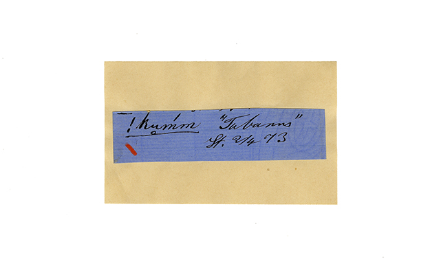 ink on blue paper glued on card