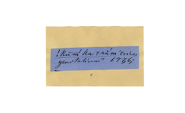 ink on blue paper glued on card