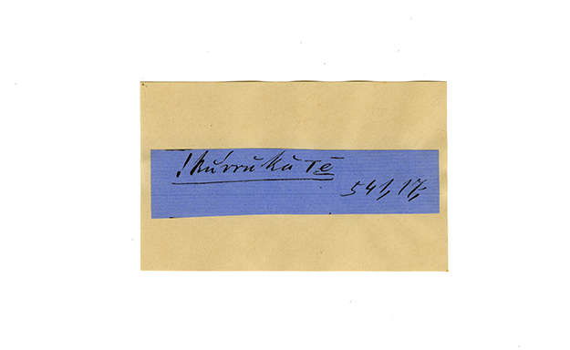 ink on blue paper glued on card