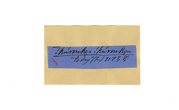 ink on blue paper glued on card
