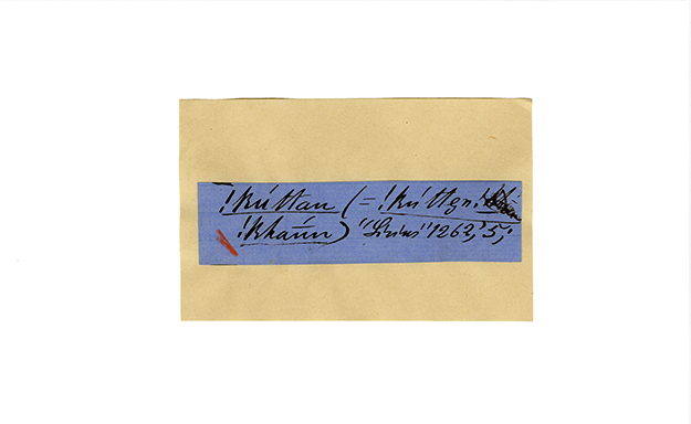 ink on blue paper glued on card
