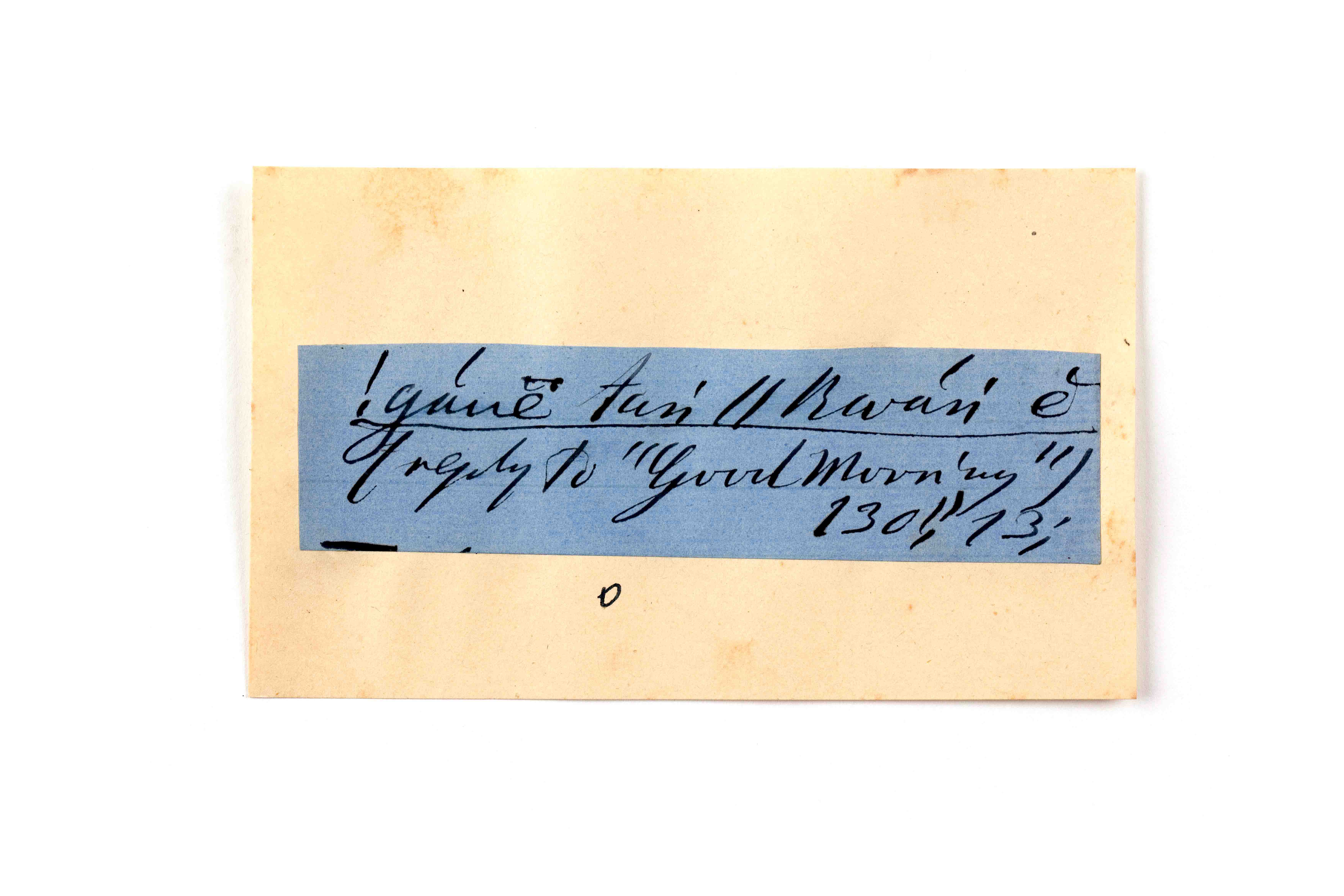 ink on blue paper glued on card