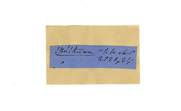 ink on blue paper glued on card