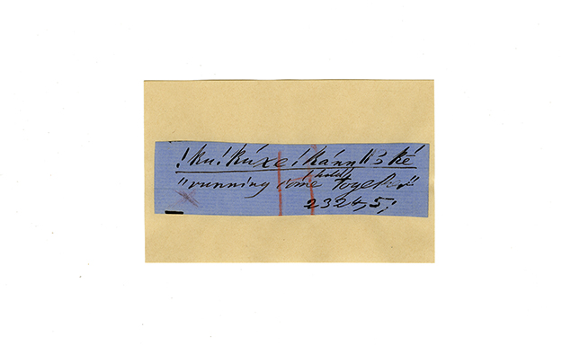 ink on blue paper glued on card