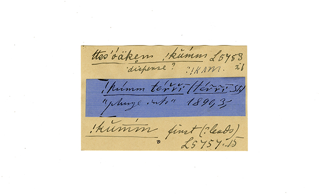 ink on blue paper glued on card