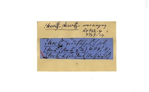ink on blue paper glued on card