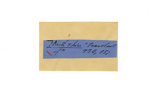 ink on blue paper glued on card