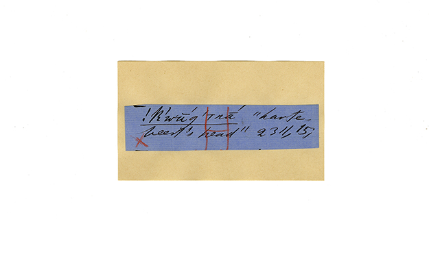 ink on blue paper glued on card