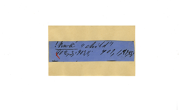 ink on blue paper glued on card