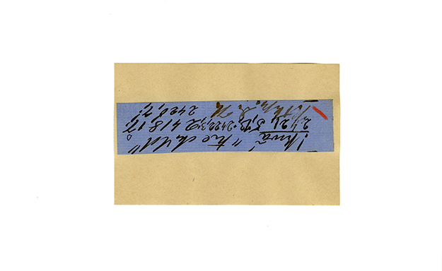 ink on blue paper glued on card