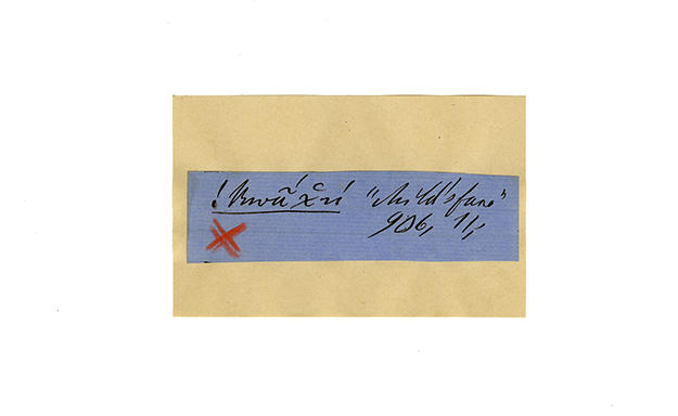 ink on blue paper glued on card