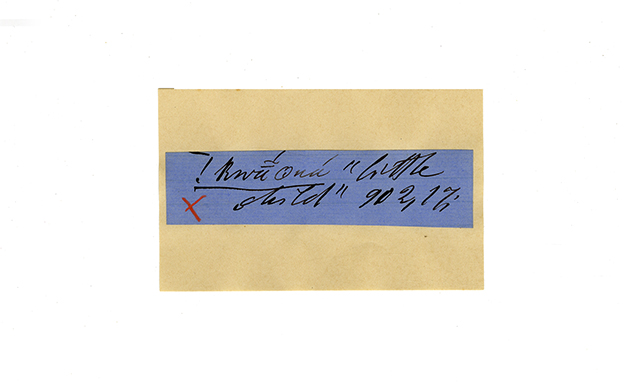 ink on blue paper glued on card
