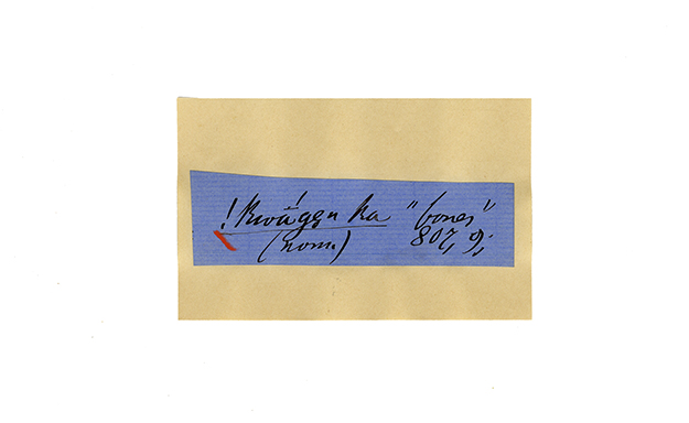 ink on blue paper glued on card