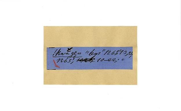 ink on blue paper glued on card