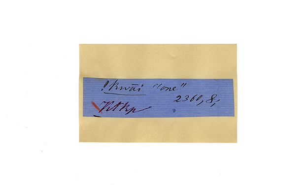 ink on blue paper glued on card