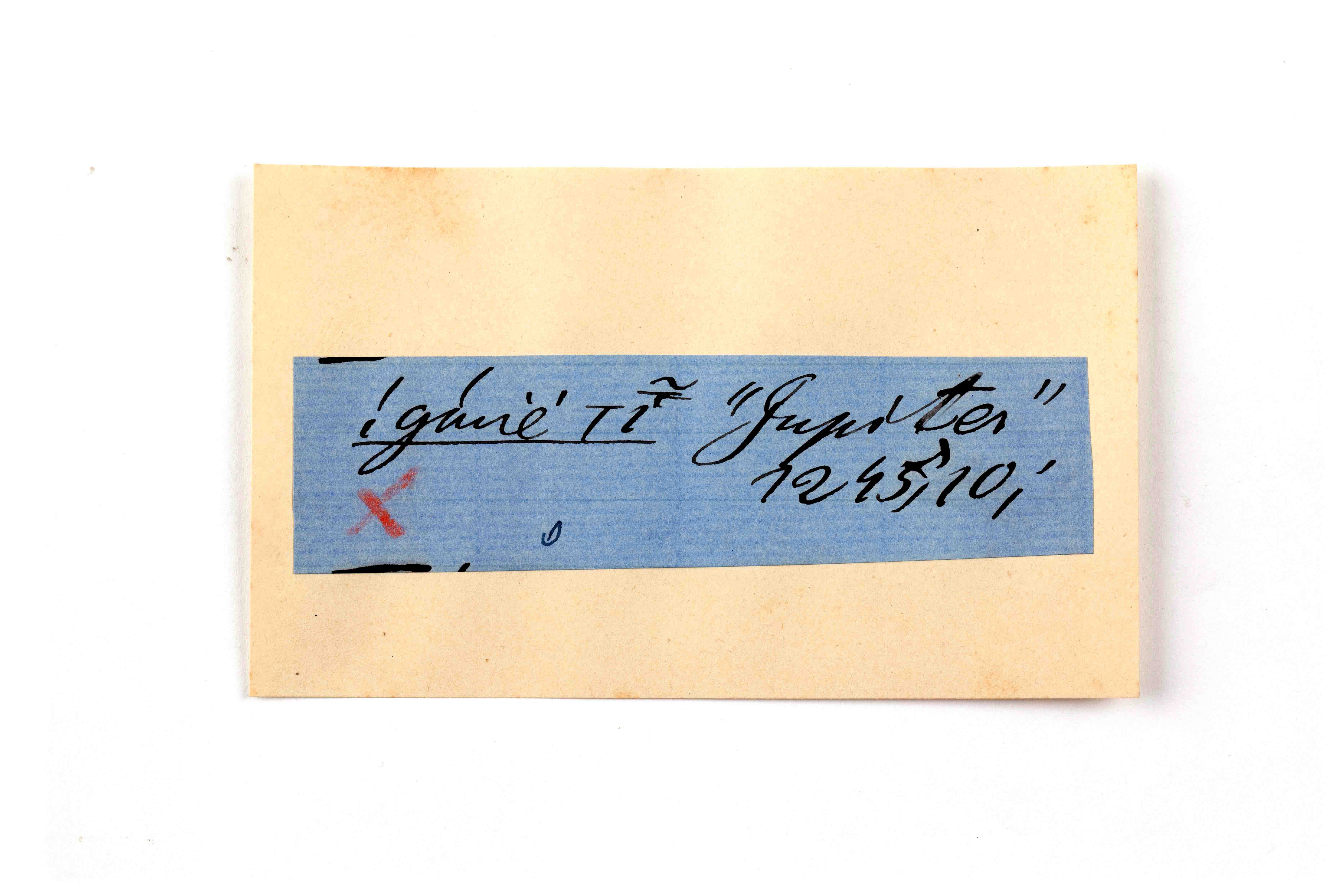 ink on blue paper glued on card
