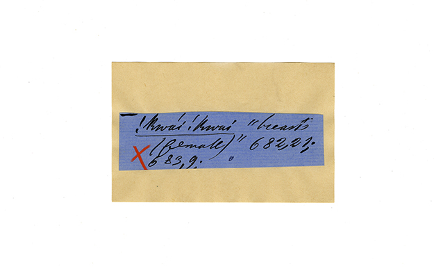 ink on blue paper glued on card