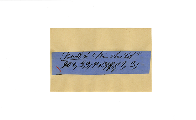 ink on blue paper glued on card