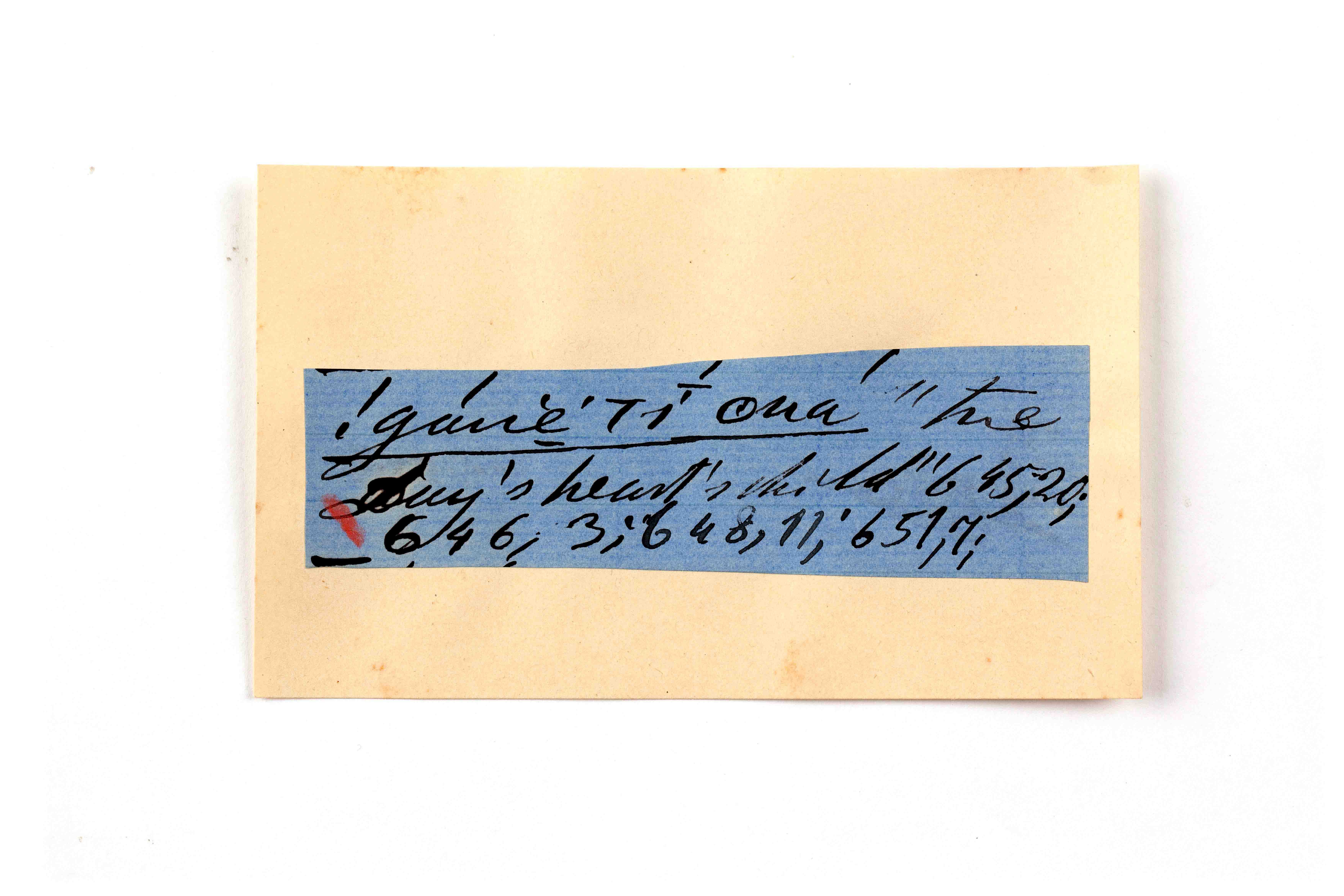 ink on blue paper glued on card