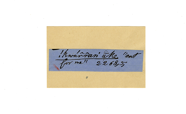 ink on blue paper glued on card