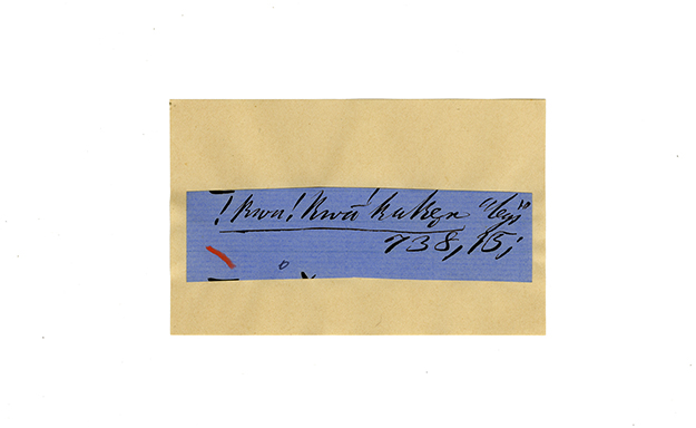 ink on blue paper glued on card