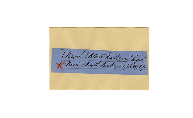 ink on blue paper glued on card