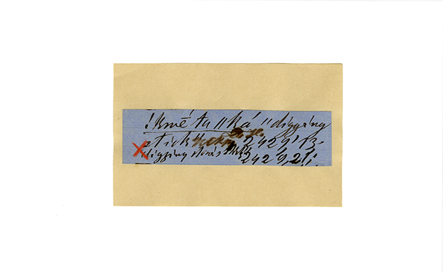 ink on blue paper glued on card
