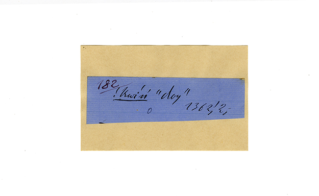 ink on blue paper glued on card