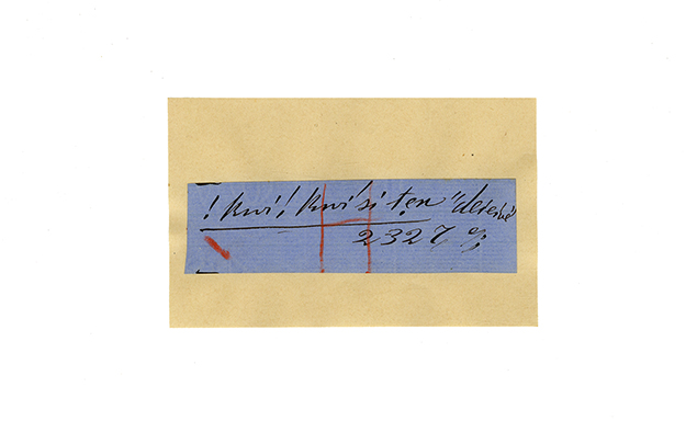 ink on blue paper glued on card