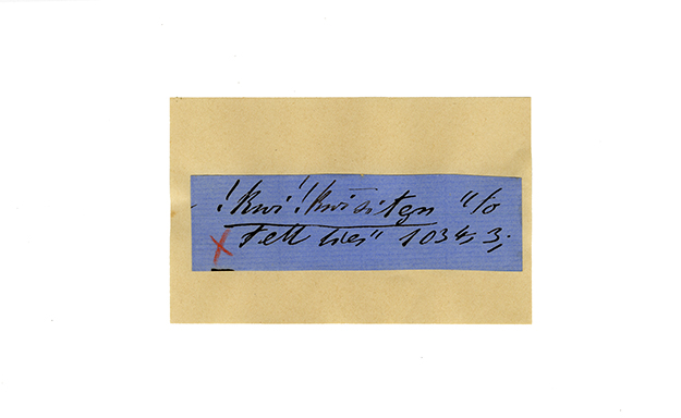 ink on blue paper glued on card
