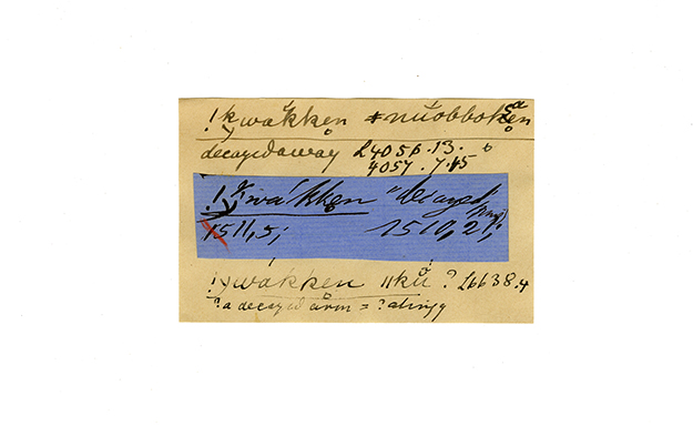 ink on blue paper glued on card