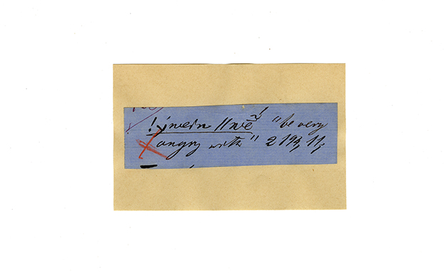 ink on blue paper glued on card
